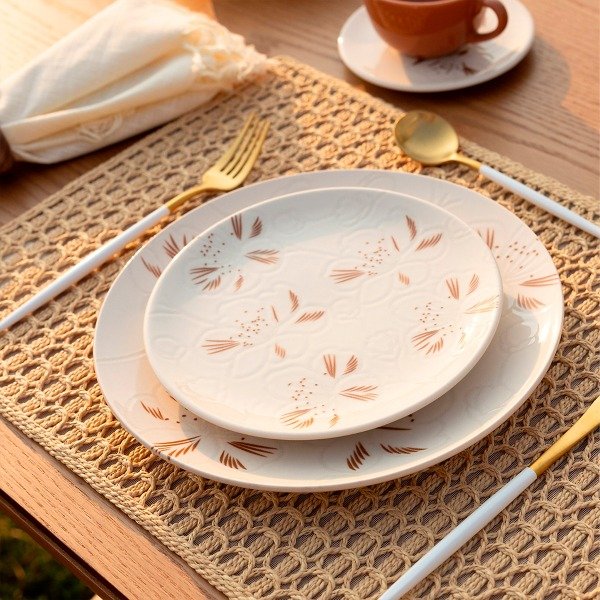 Dale un toque delicado y sofisticado a tu mesa con este plato de postre de 20 cm. Su diseño floral en tonos cálidos sobre base crema transmite frescura y elegancia, ideal para acompañar momentos dulces o servir entradas con estilo.