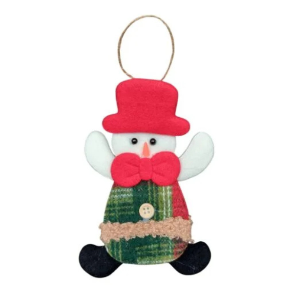 Dale un toque cálido y encantador a tu árbol con este adorable muñeco de nieve de tela. Confeccionado en suaves materiales y detalles en fieltro, combina colores tradicionales en tonos rojo, verde y blanco que evocan la magia de la Navidad.