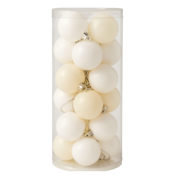 Este set de bochas de 5 cm combina tonos blancos y marfil en acabado opaco, ideales para crear un árbol navideño luminoso y armónico. Su diseño minimalista permite mezclarlas fácilmente con decoraciones doradas, de madera o con brillo, logrando una ambientación moderna y acogedora.