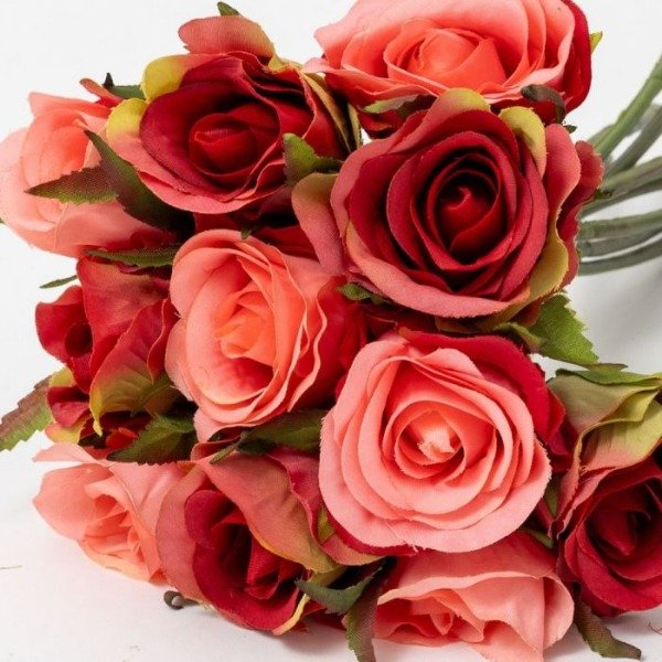 Un detalle eterno que nunca pasa de moda. Este ramo de rosas en tonos suaves es perfecto para colocar en un florero y darle un aire fresco y romántico a tu hogar. Con 23 cm de altura, es ideal para decorar mesas, estantes o rincones especiales, sin preocuparte por el cuidado diario.